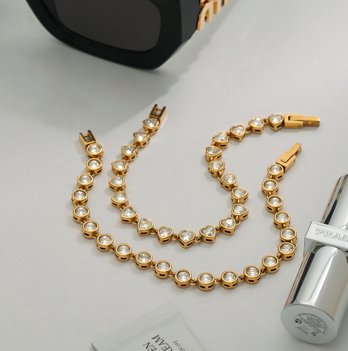Elevate your style with the Tanya Bracelet. Made with 18k gold plated stainless steel, this elegant tennis bracelet features a secure closure and comes in your choice of round or heart shaped stones. Enhance any outfit with this timeless and sophisticated piece.